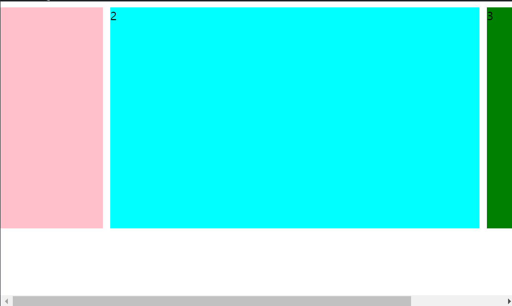 위와 같이 화면이 줄어들었을때 box들은 각 크기를 유지한 채 박스들의 크기 만큼 가로 스크롤이 생길거라 생각했는데, 위와 같이 각 양 옆 박스가 잘리는 모습이 나타났다. 살펴보면 박스는 여전히 본인의 크기를 유지하고 있지만 그냥 화면에 잘려있을 뿐이다.
